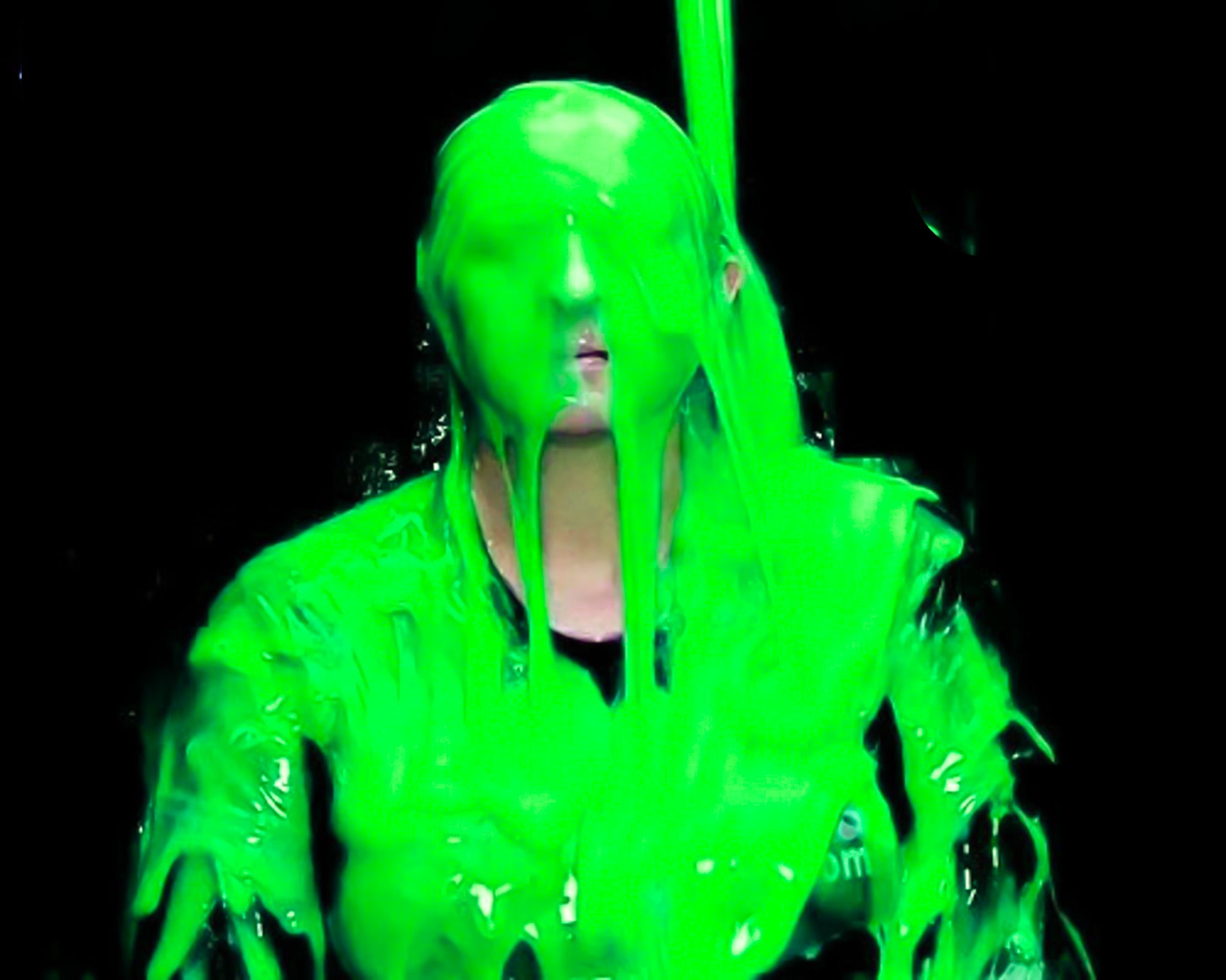 Our green slime has a smooth shiny texture, similar to what you see widely used on TV for a number of years (similar to Nickelodeon type, in appearance and thickness)